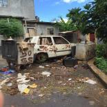 Épave de Peugeot 106 calcinée à Mamoudzou